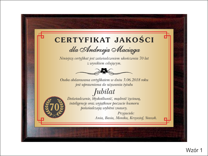 Prezentowany dyplom dedykowany jest jako certyfikat z okazji urodzin, ale można wykonać go też na inną okoliczność.