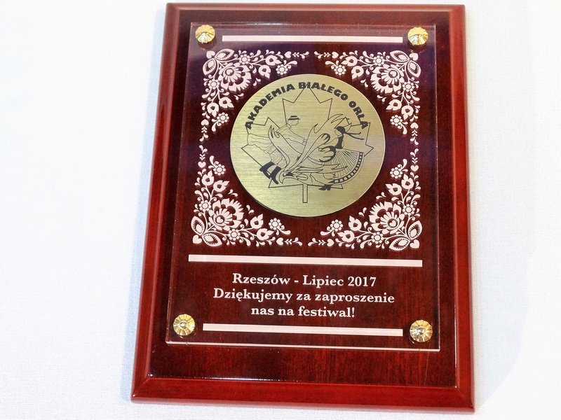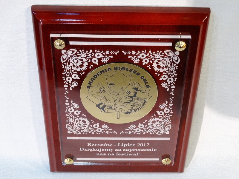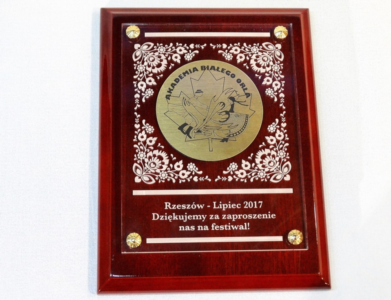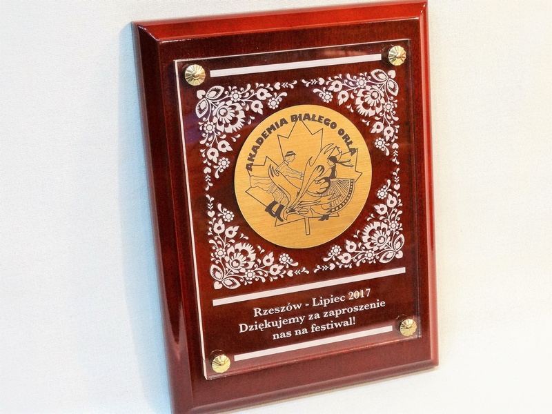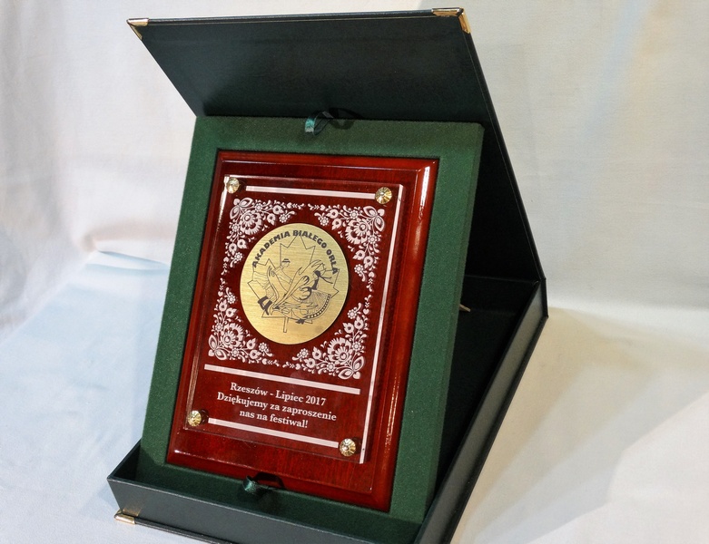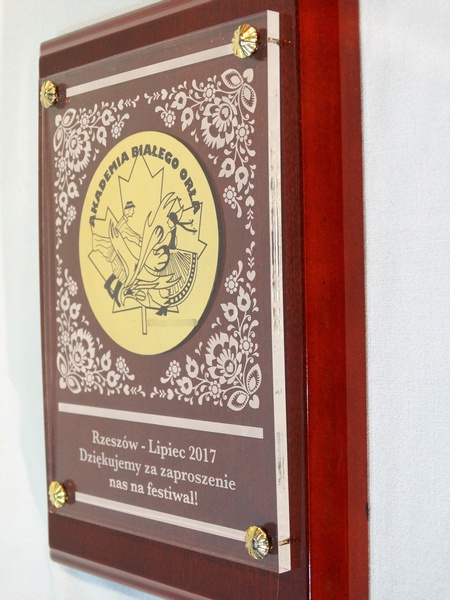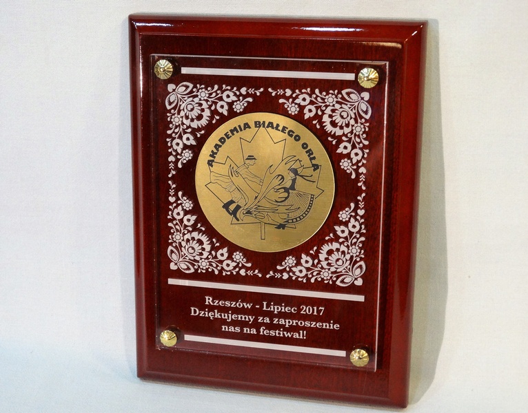 Dyplom okolicznościowy w formie pamiątkowego ryngrafu okolicznościowego, na drewnianym podkładzie, składający się: