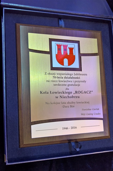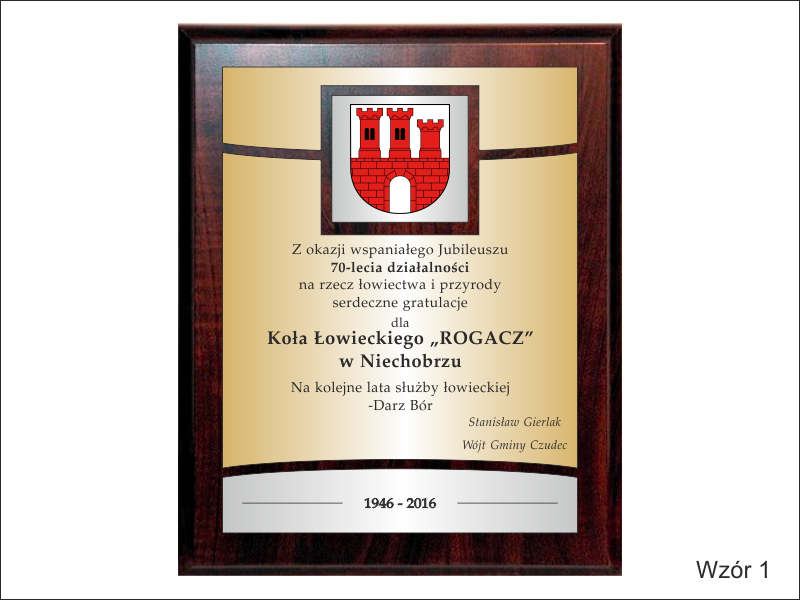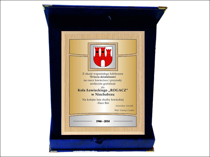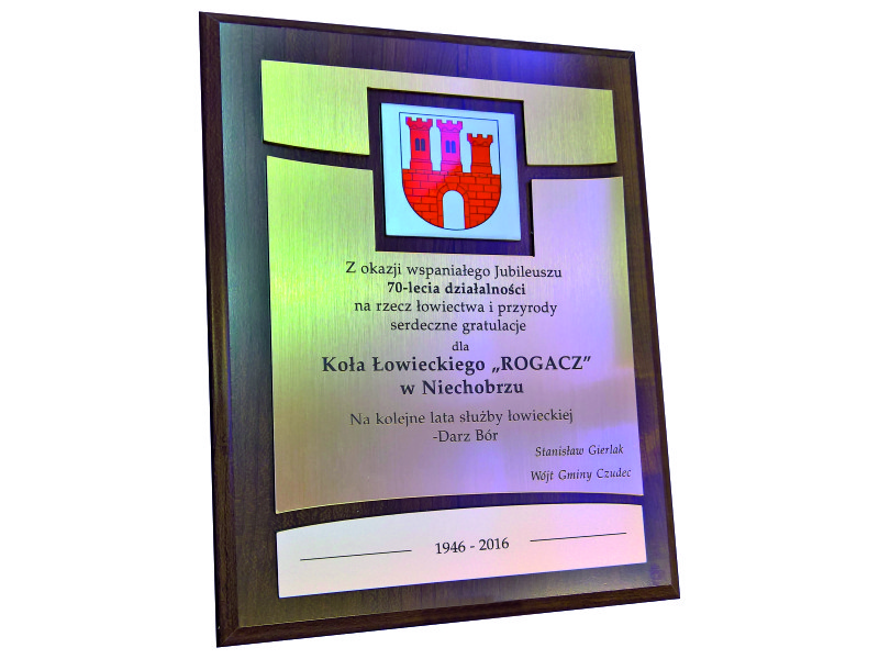 Prezentowany dyplom przeznaczony jest jako pamiątka z okazji jubileusz funkcjonowania koła łowieckiego i wręczany jest w imieniu gminy, ale można wykonać go także na inną okoliczność.