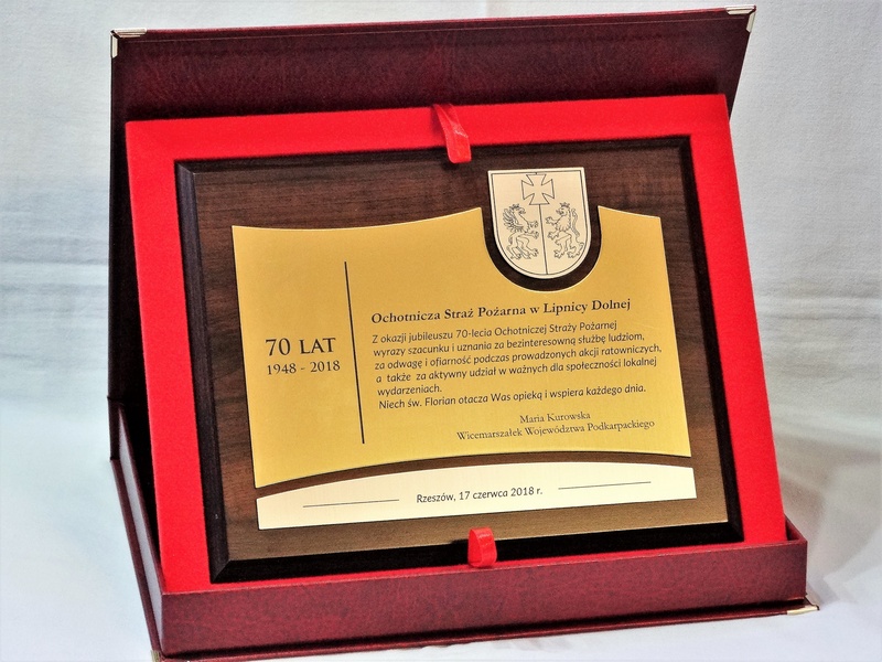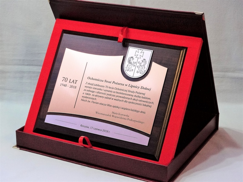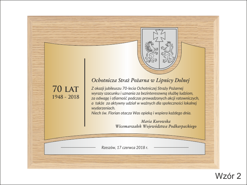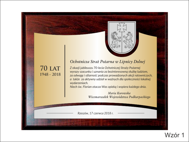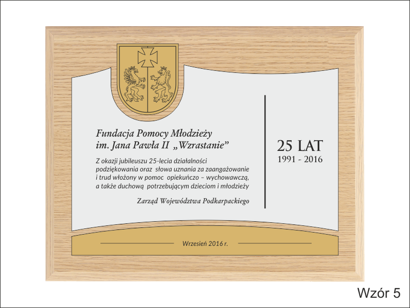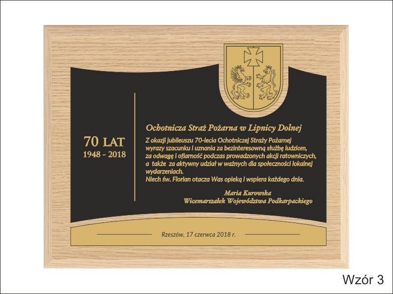 Dyplom okolicznościowy złożony na standardowym drewnianym podkładzie, składający się: