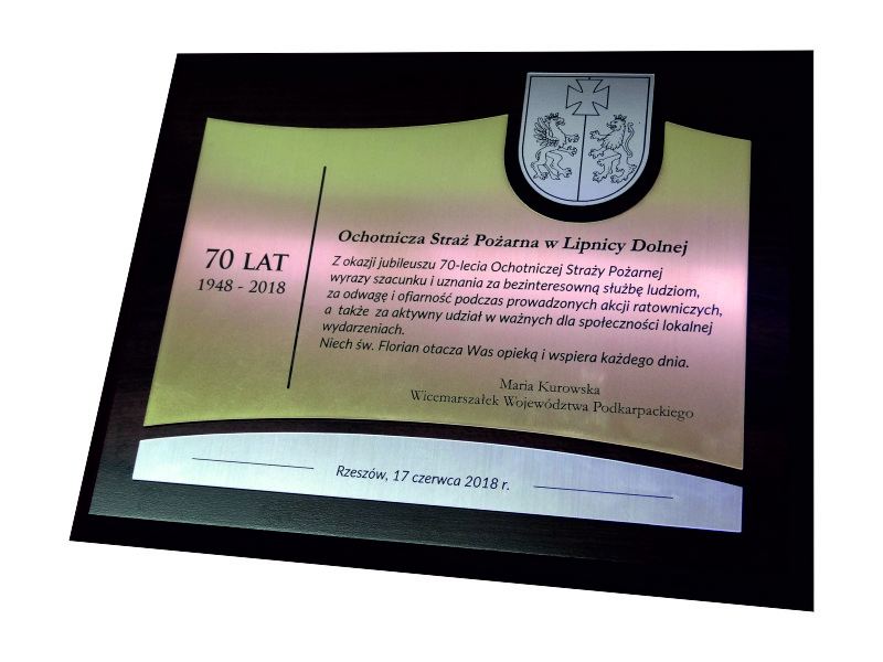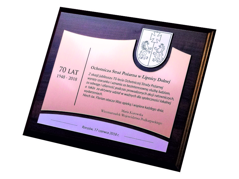 - z dopasowanych do siebie trzech rodzajów laminatów, z wygrawerowaną lub nadrukowaną dedykacją, herbem, logiem czy odznaką