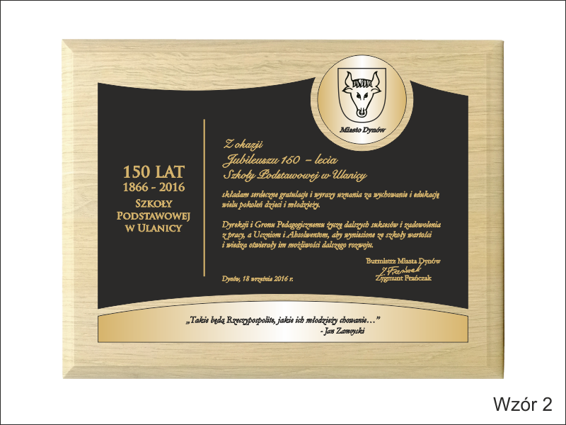 Prezentowany dyplom dedykowany jest jako jubileusz powstania szkoły, ale można wykonać go też na inną okoliczność.