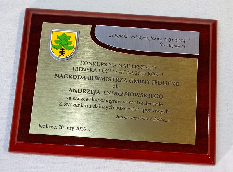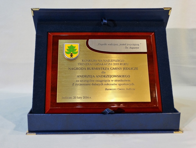 - z dopasowanych do siebie laminatów z wygrawerowaną dedykacją i wkomponowanym miejscem na herb, logo, odznakę