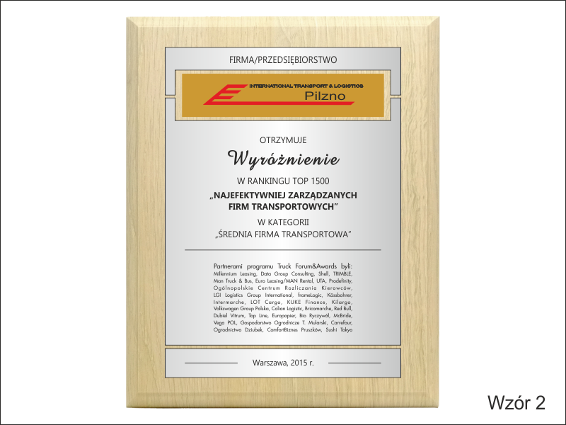 Dyplom drewniany złożony - nagroda, wyróżnienie firmy