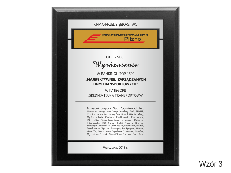 Prezentowany dyplom wykonany jest jest jako wyróżnienie, nagroda dla firmy, ale można wykonać go też na inną okoliczność.