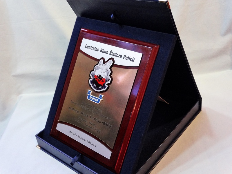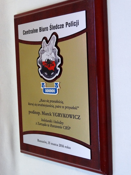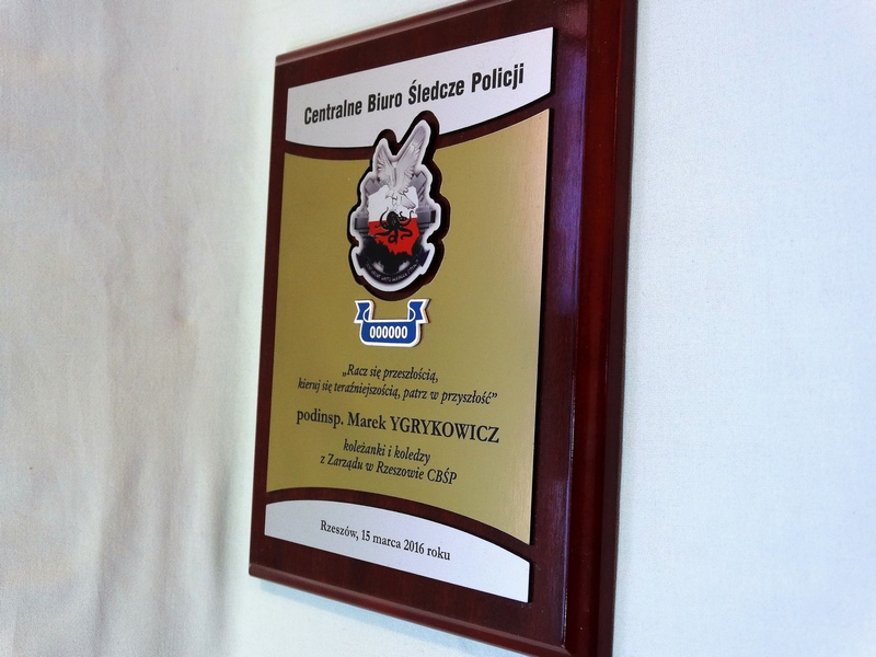 - z wykonanej z laminatów i pleksy odznaki (herbu, loga)
