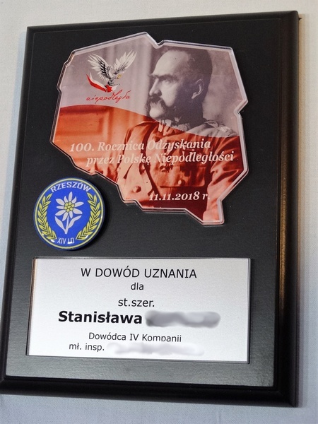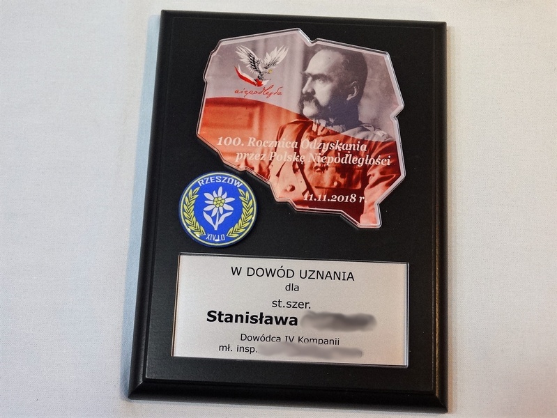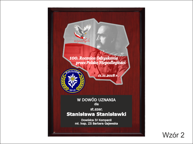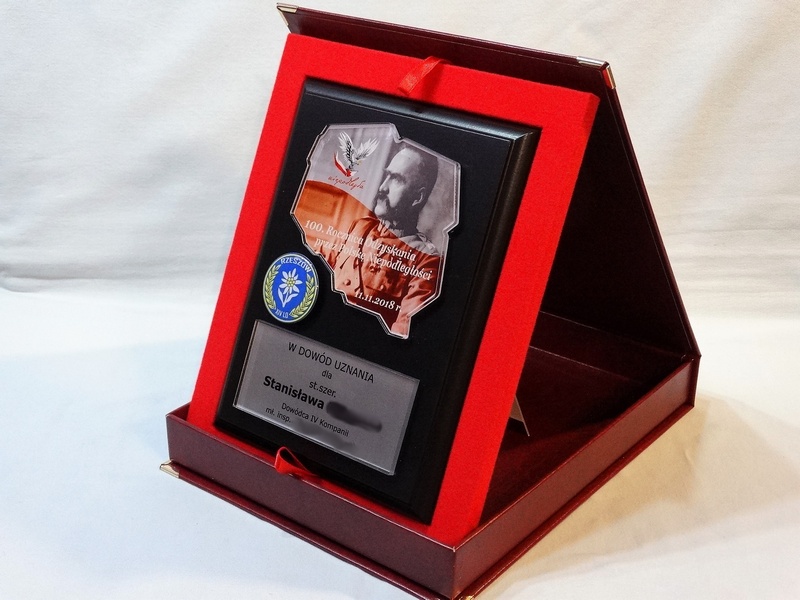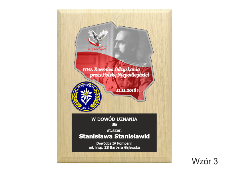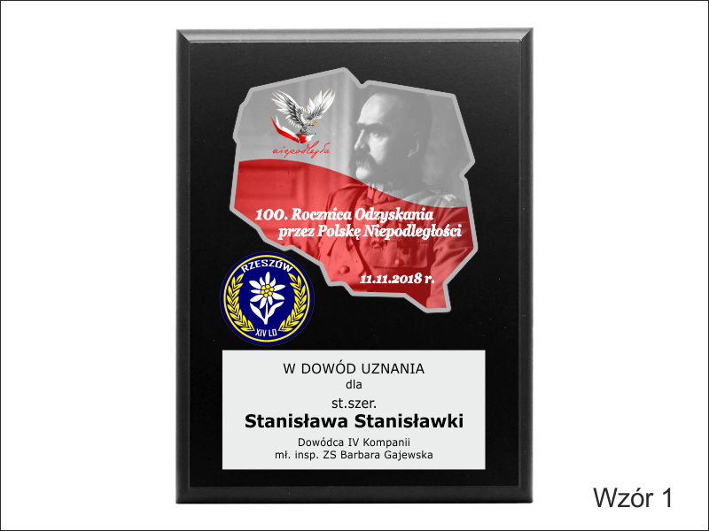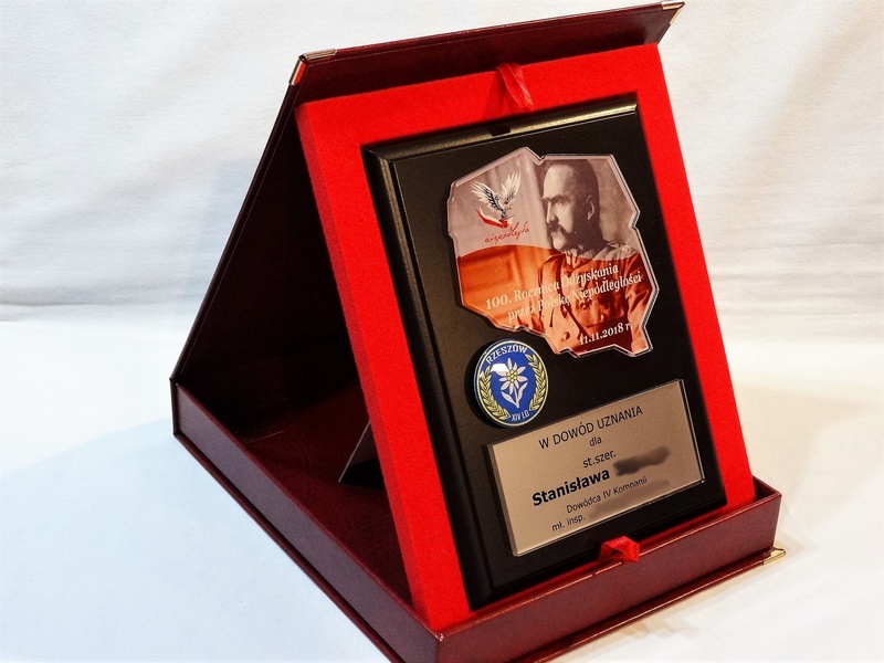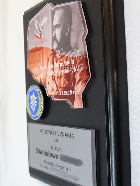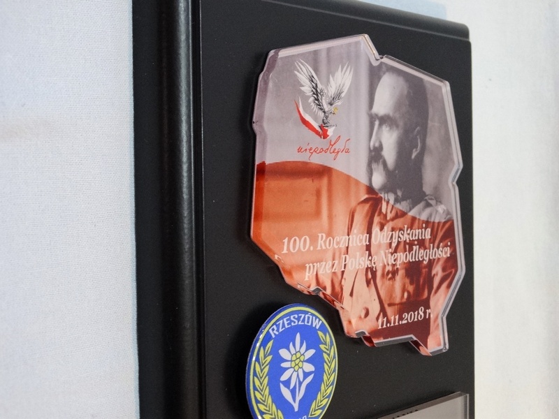 Mapa / odznaka / herb i dedykacja z pleksi mogą mieć dowolny kształt.