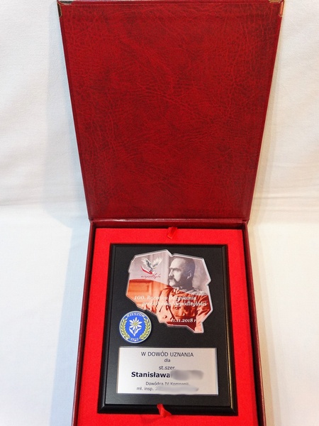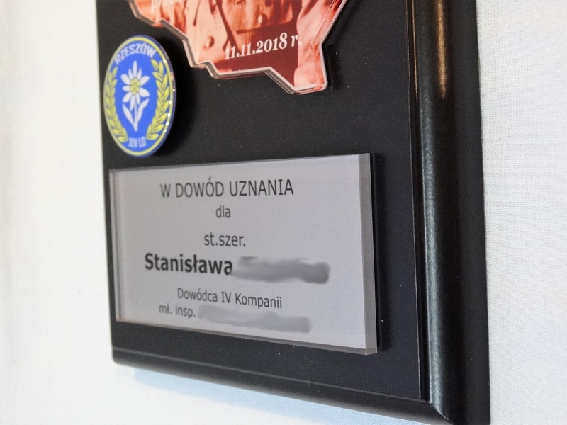 - z umieszczonej pod mapą bezbarwnej pleksi z nadrukiem dedykacji,