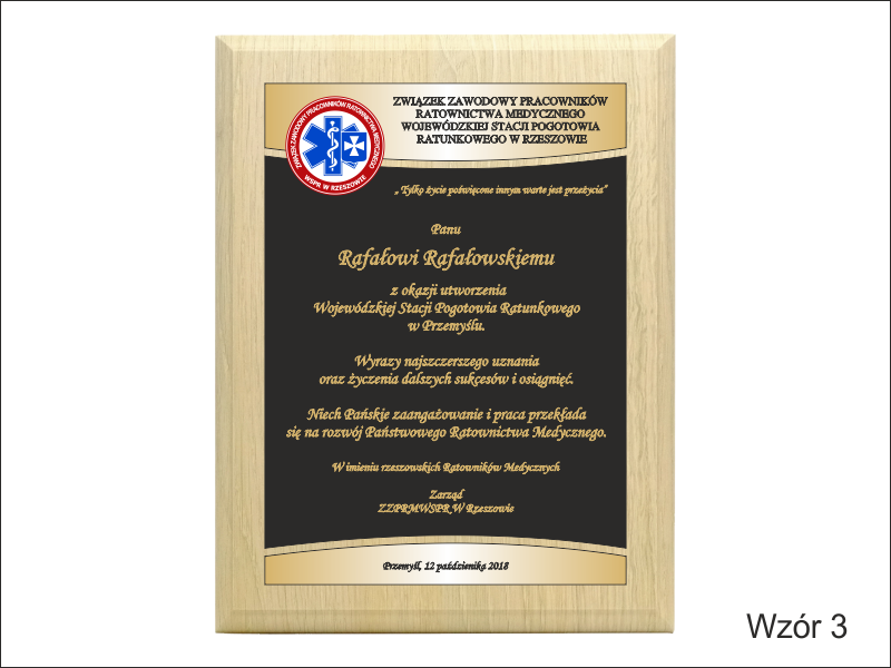 Istnieje możliwość wykonania dedykacji wg indywidualnych ustaleń i projektu uzgodnionego z klientem lub wg jednego z wzorów.