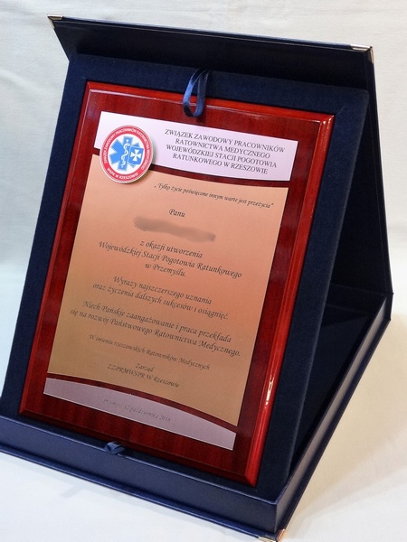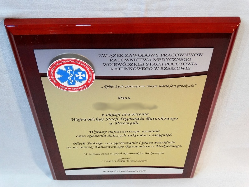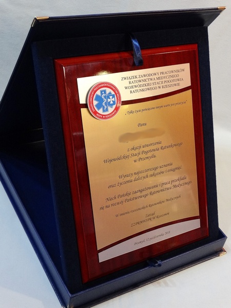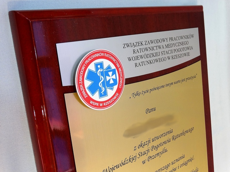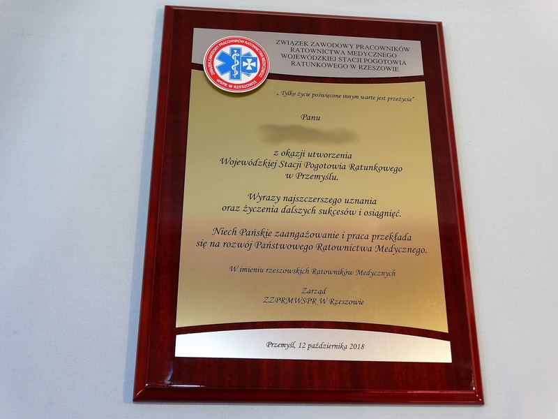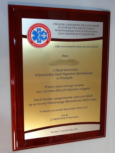 - z dopasowanych do siebie laminatów (srebrnego, złotego, czarnego), z wygrawerowaną dedykacją,