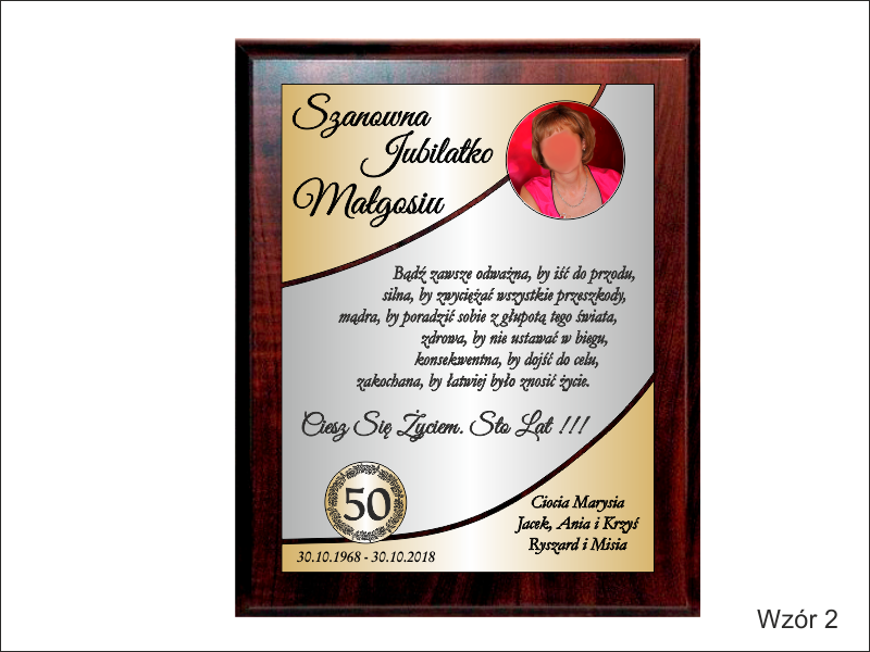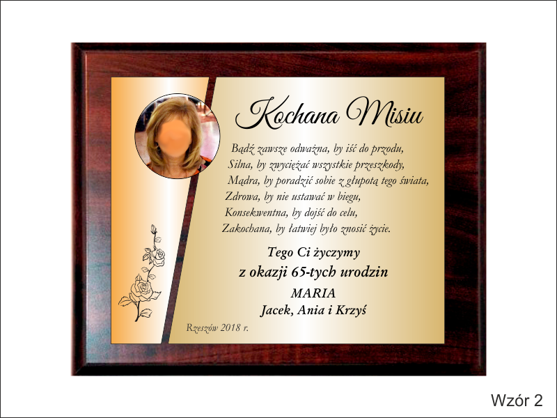 Istnieje możliwość wykonania dedykacji wg indywidualnych ustaleń i projektu uzgodnionego z klientem lub wg jednego z wzorów.