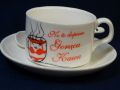 Gorąca kawa - filiżanka z nadrukiem, z łyżeczką i spodkiem