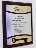 Dyplom drewniany złożony - pamiątka wspólnej pracy z symbolicznym kluczem