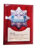 Pamiątka wspólnej służby w Policji - ryngraf drewniany z odznaką