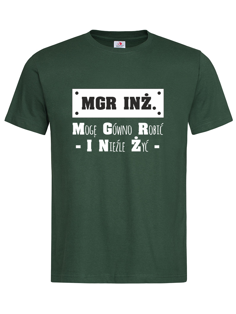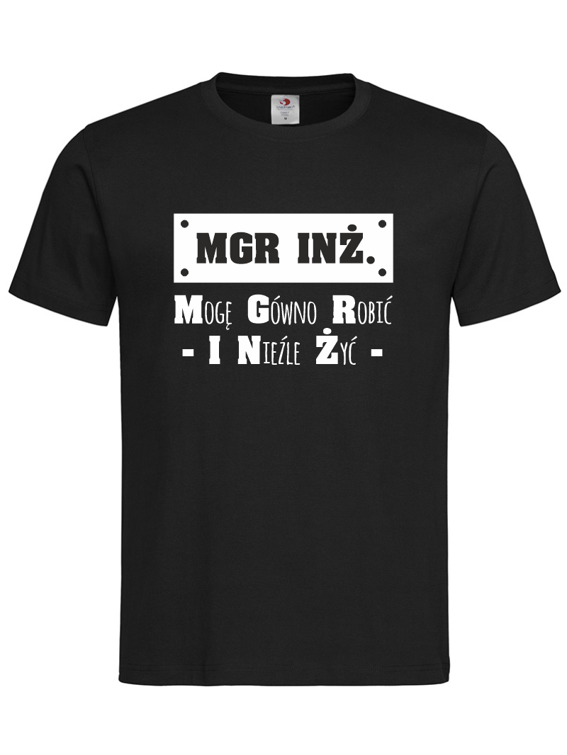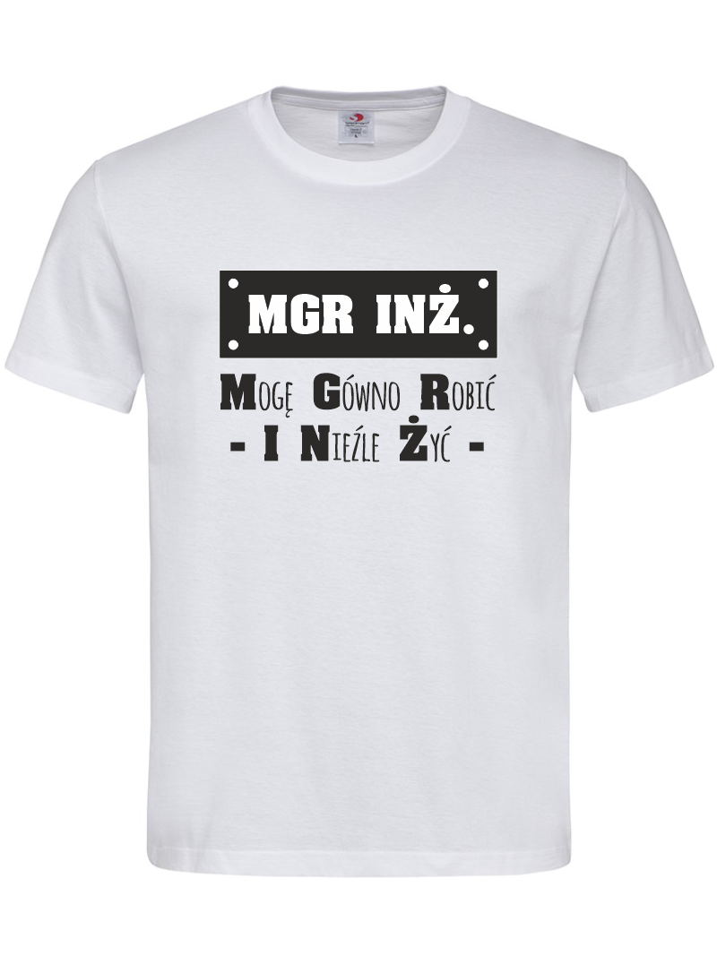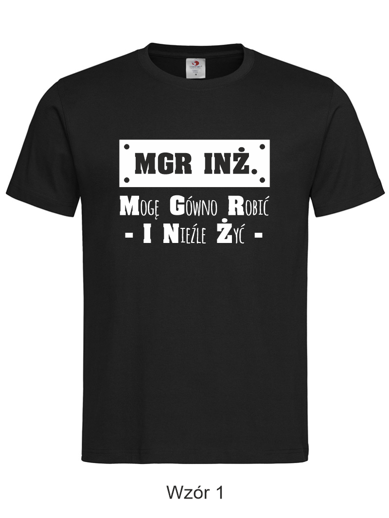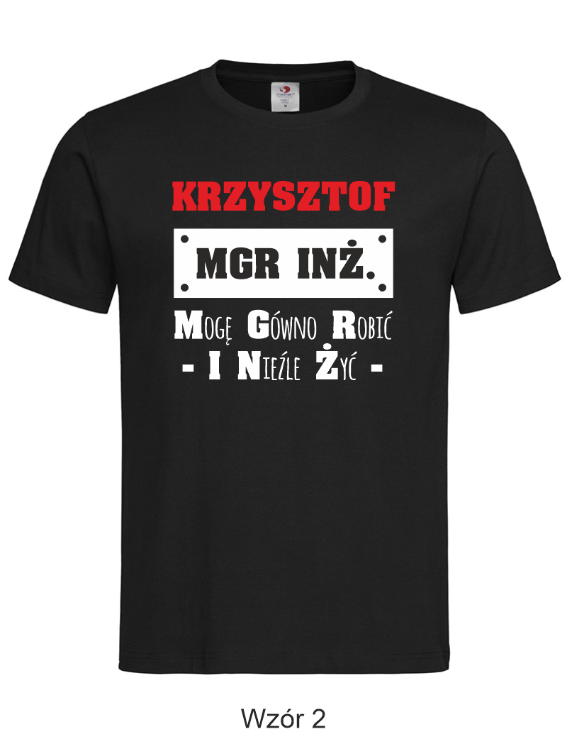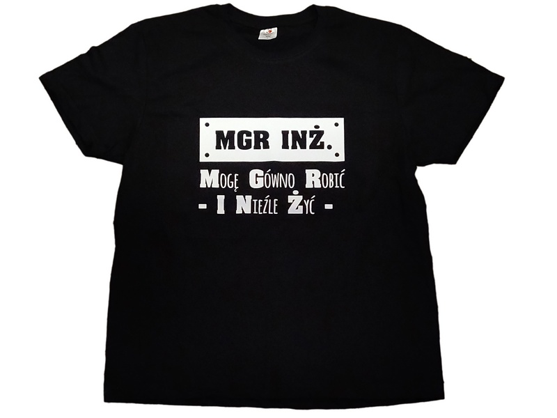 Na froncie koszulki znajduje się wykonany nadruk dedykacji dla Magistra Inżyniera.