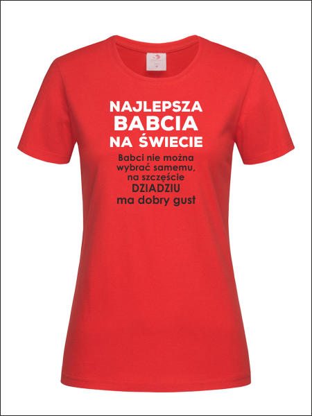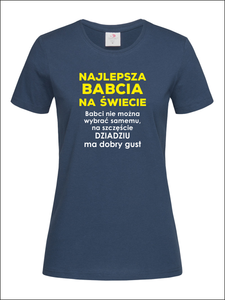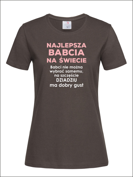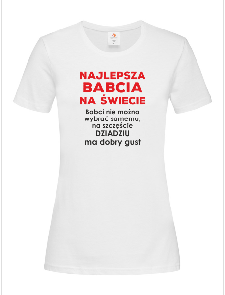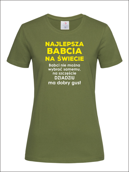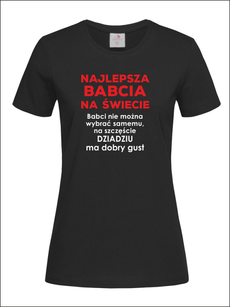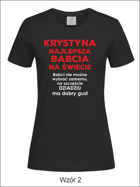 Na przodzie koszulki znajduje się wykonany nadruk dedykacji dla Babci: