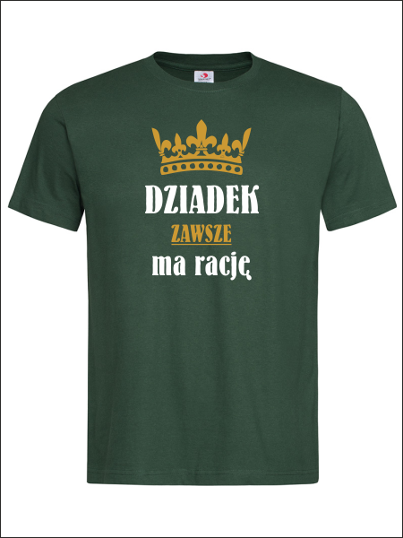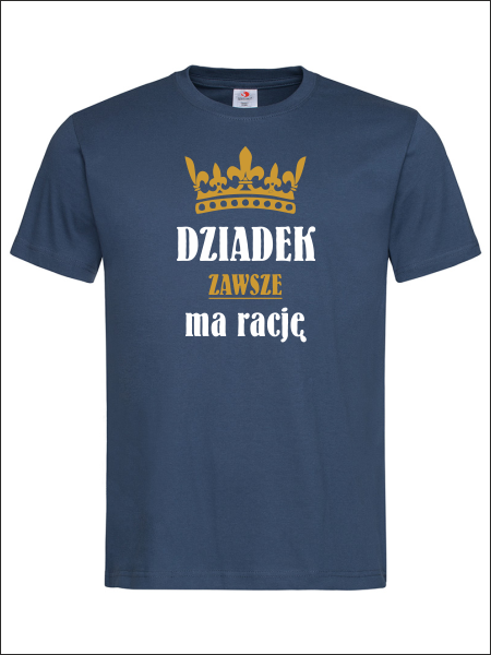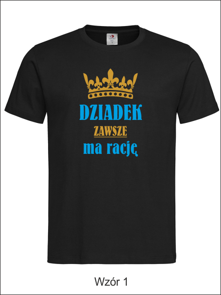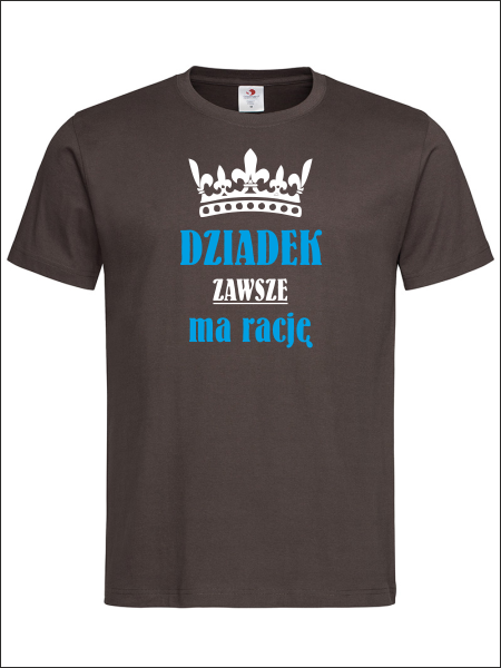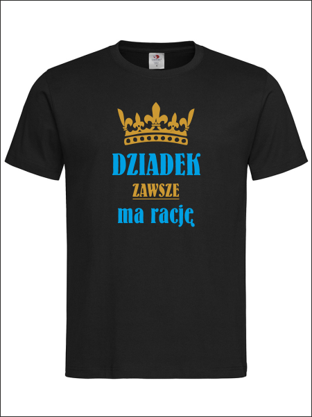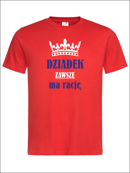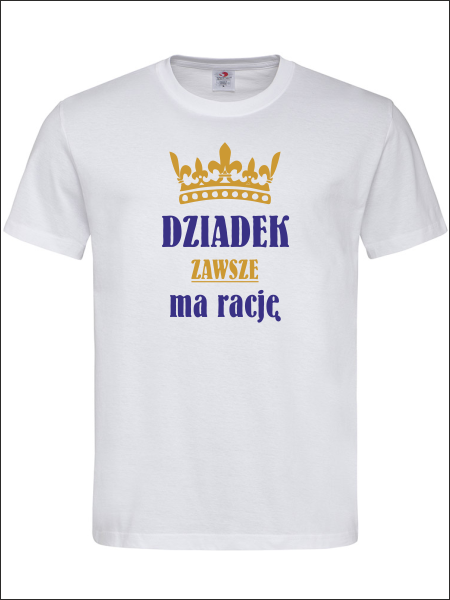 Na froncie koszulki znajduje się grafika korony oraz dedykacja dla Dziadka - "Dziadek zawsze ma rację".