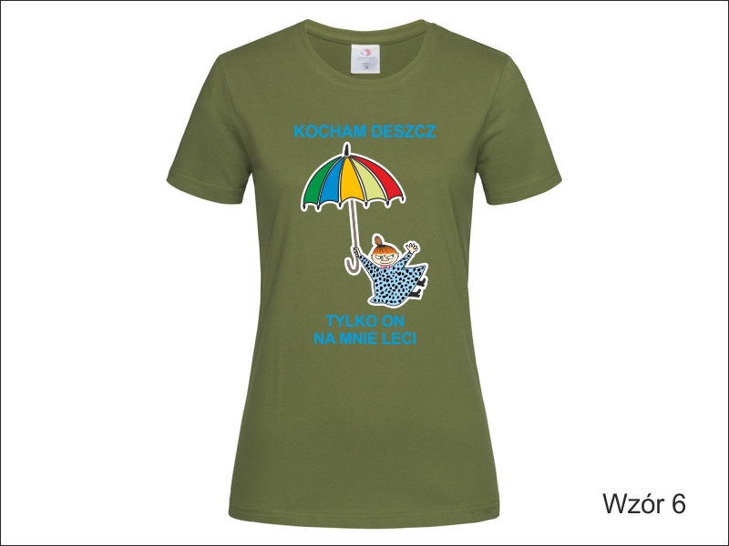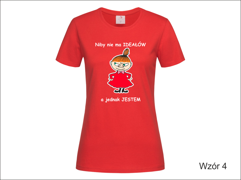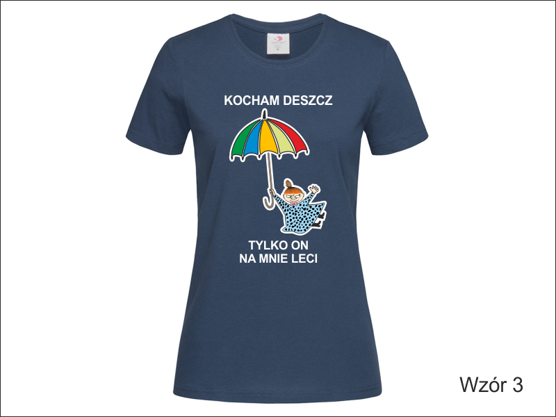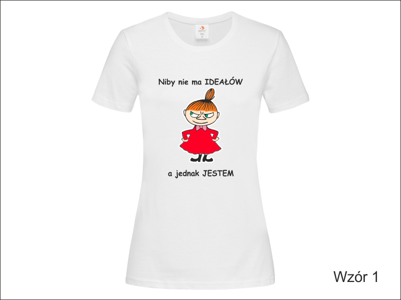 Propozycja na upominek dla Niej w postaci koszulki damskiej z nadrukowaną z przodu grafiką i dedykacją.