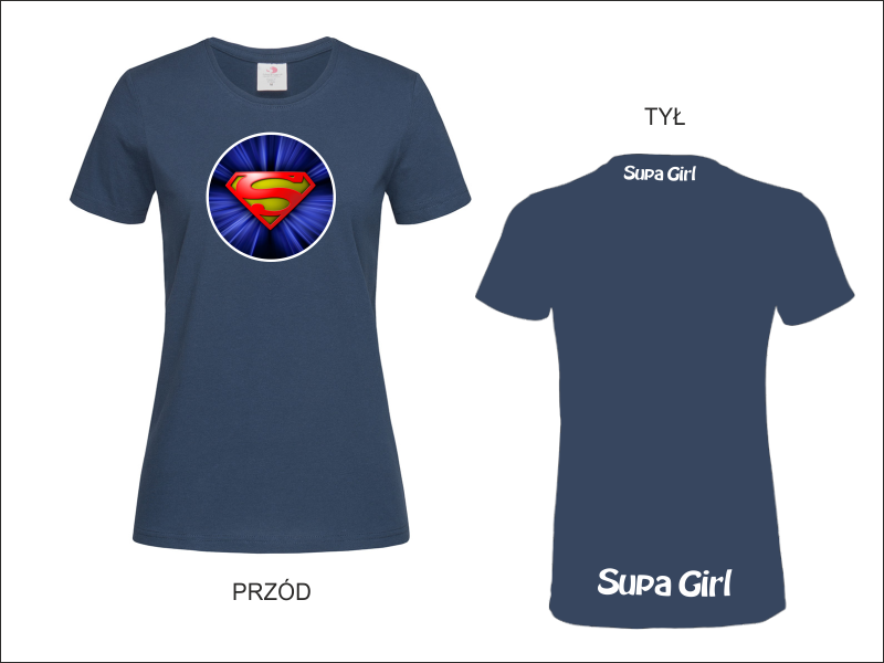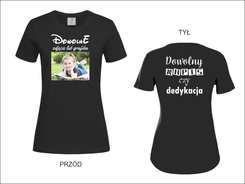 Koszulka damska z nadrukowaną dwustronnie grafiką, zdjęciem czy napisem.