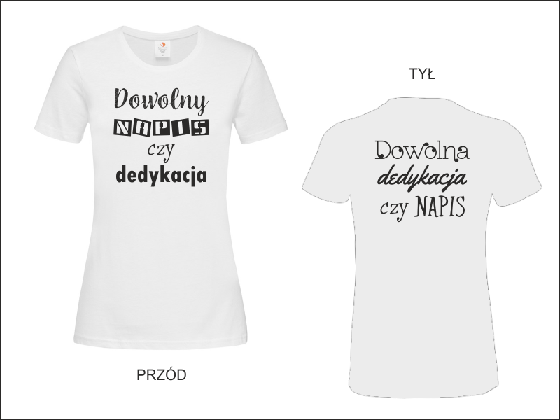 Koszulka damska z nadrukowanym obustronnie, dowolnym napisem czy prostą grafiką.