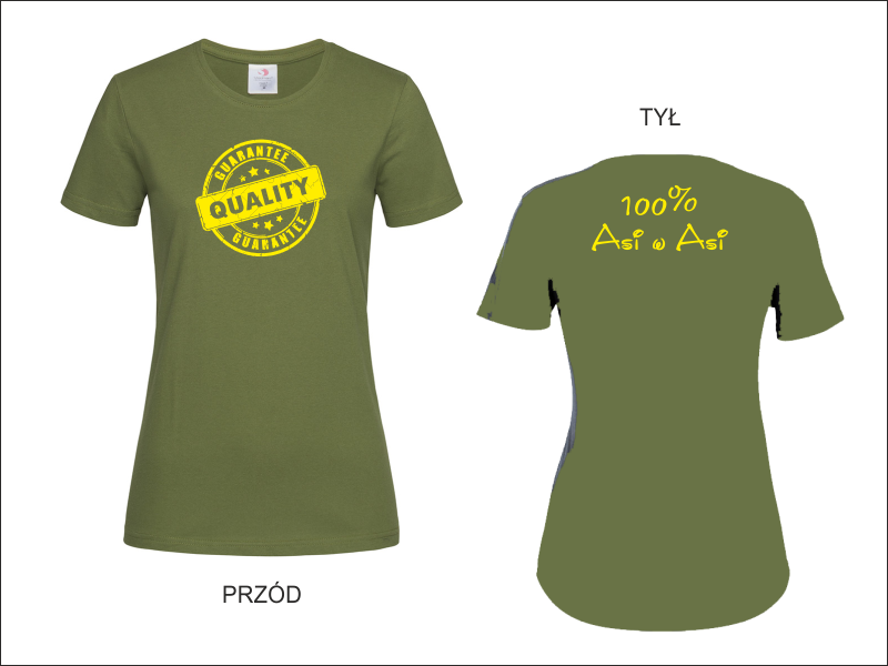 Nadruk wykonany jest na wysokiej jakości, bawełnianej damskiej koszulce z krótkim rękawem.