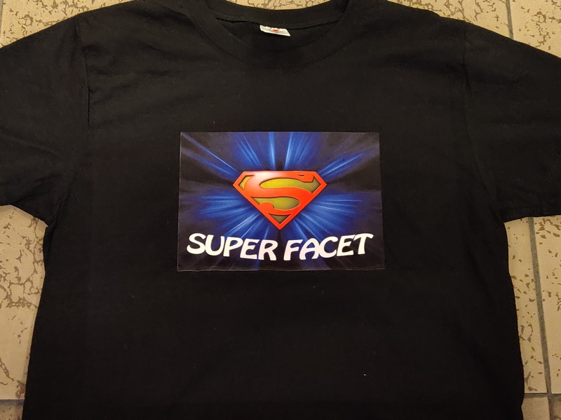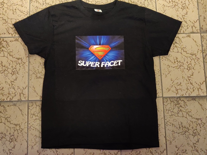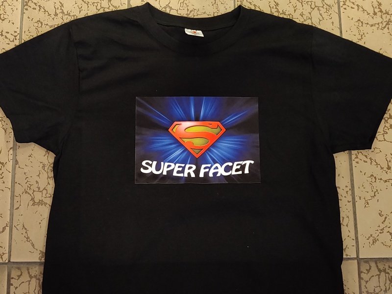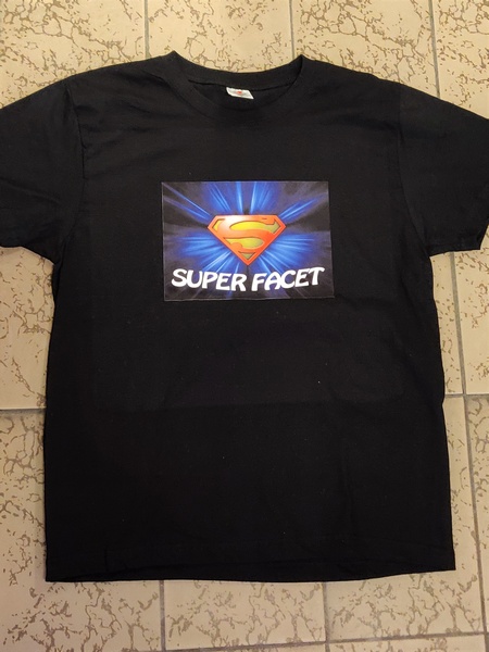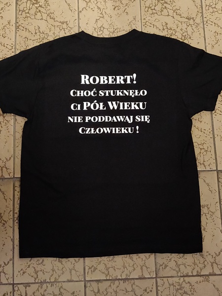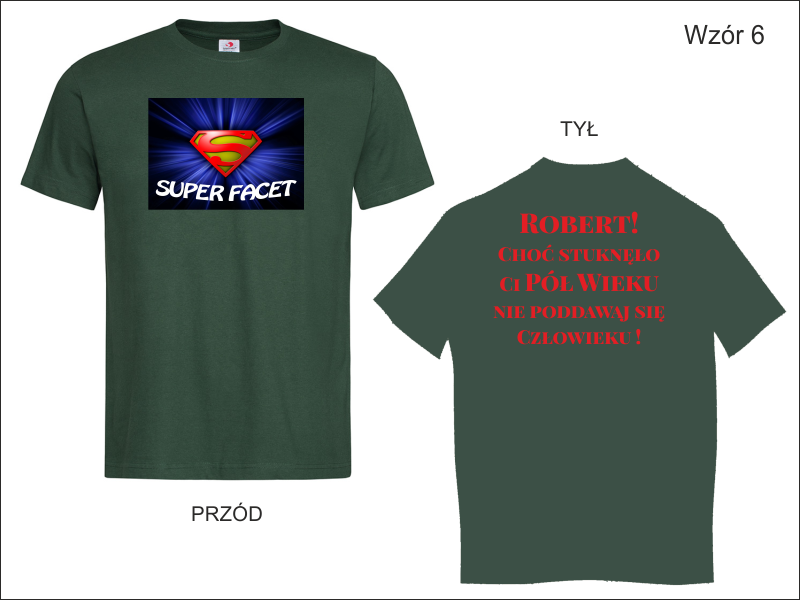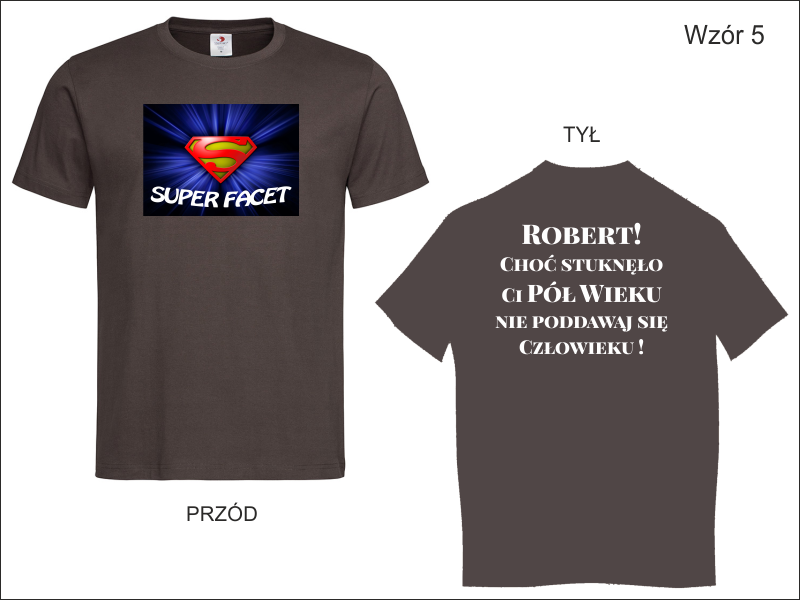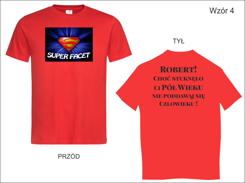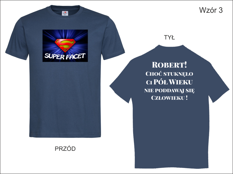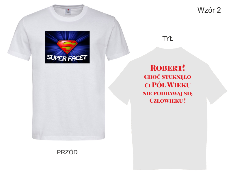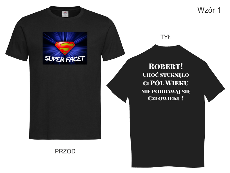 Urodzinowa koszulka z dwustronnym nadrukiem. Na przodzie koszulki grafika i napis "Super Facet", na tylnej stronie dedykacja.