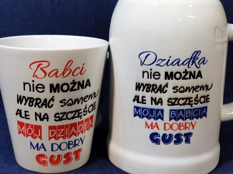 Kubek i kufel w szczególności mogą sprawdzić się jako prezent z okazji Dnia Babci i Dnia Dziadka.