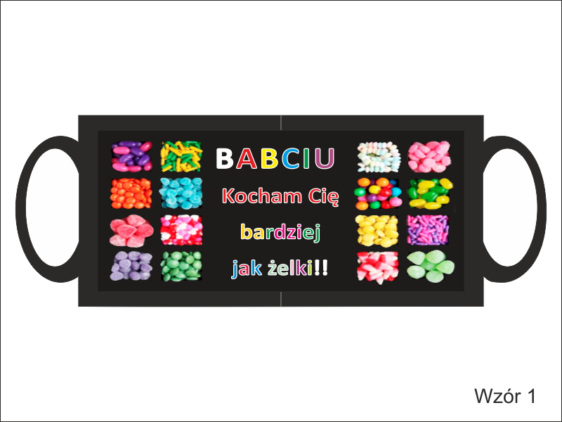 Nadruk dedykacji na kubku jest dowolny i można wykorzystać jeden z wzorów lub wykonać wg indywidualnych ustaleń.