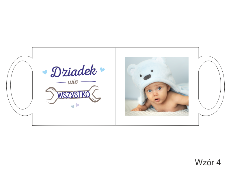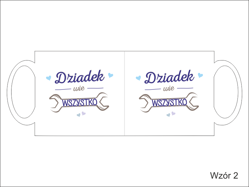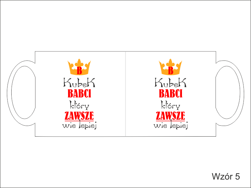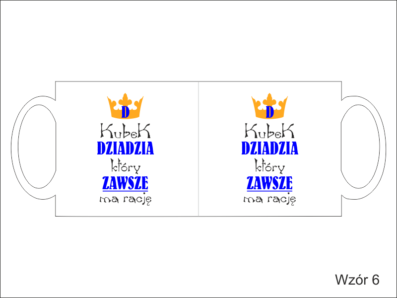Nadruk dedykacji na kubku jest dowolny i można wykorzystać jeden z wzorów lub wykonać wg indywidualnych ustaleń.