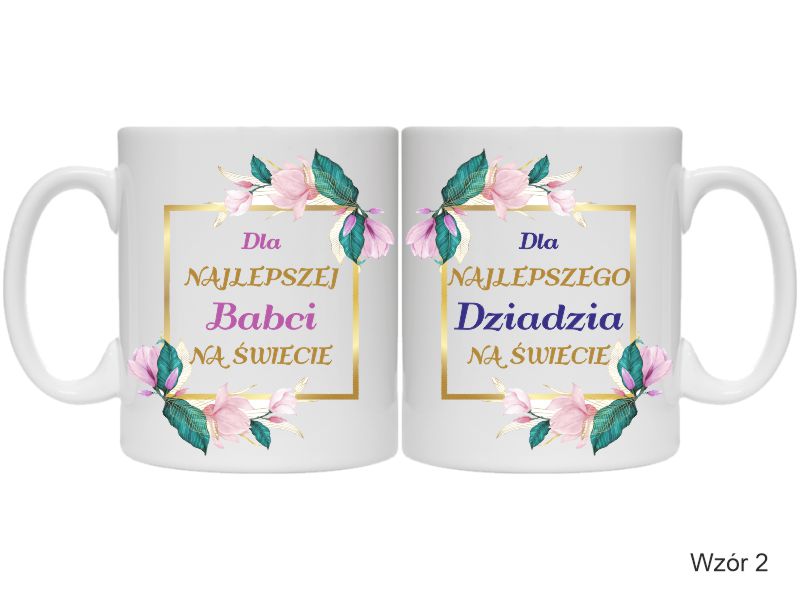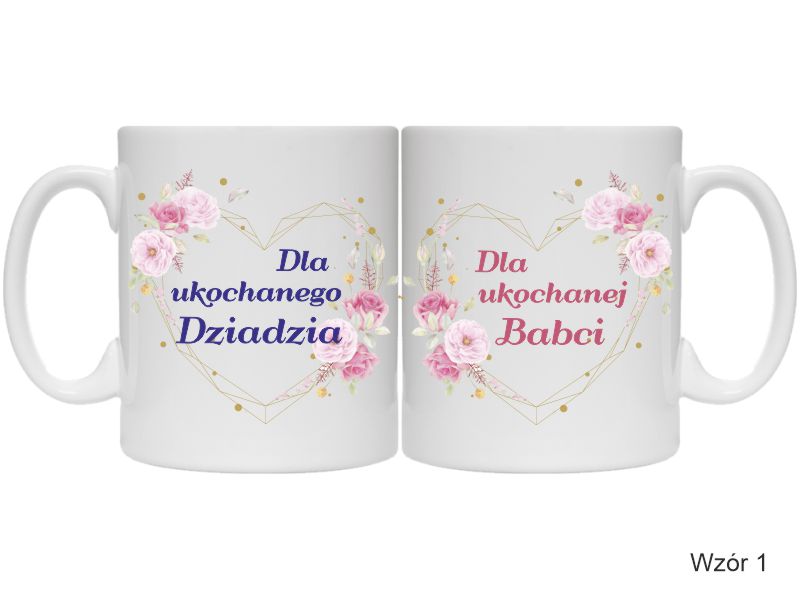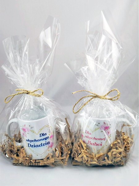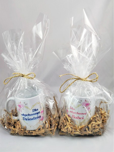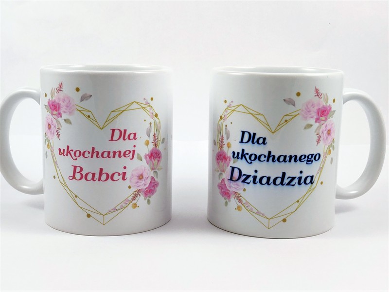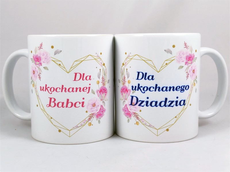 Wspólny upominek dla Babci i Dziadzia w postaci kompletu dwóch kubeczków z nadrukiem.