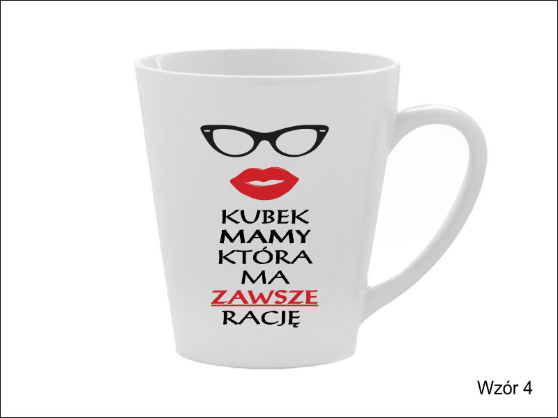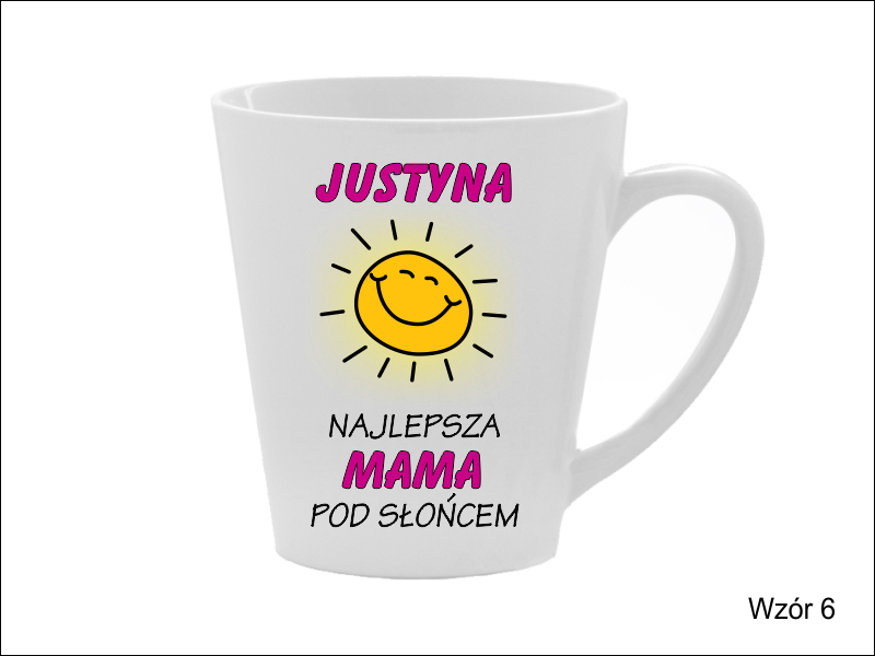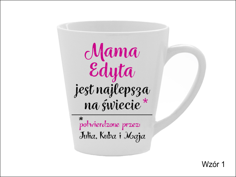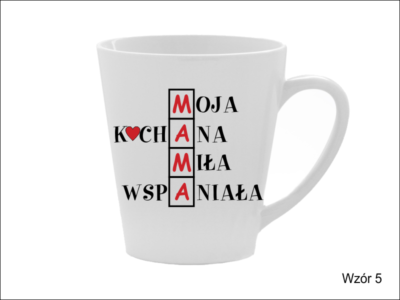 Upominek dla Mamy w postaci ceramicznego kubka do latte z nadrukiem dedykacji.