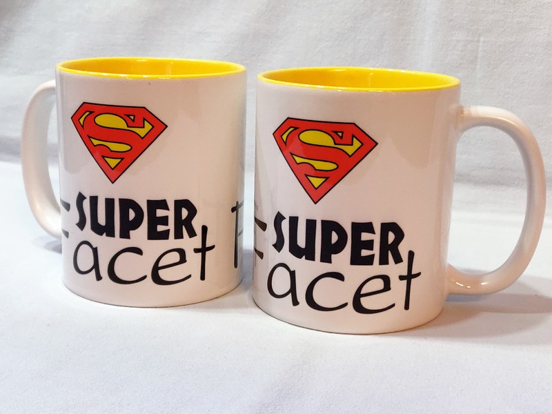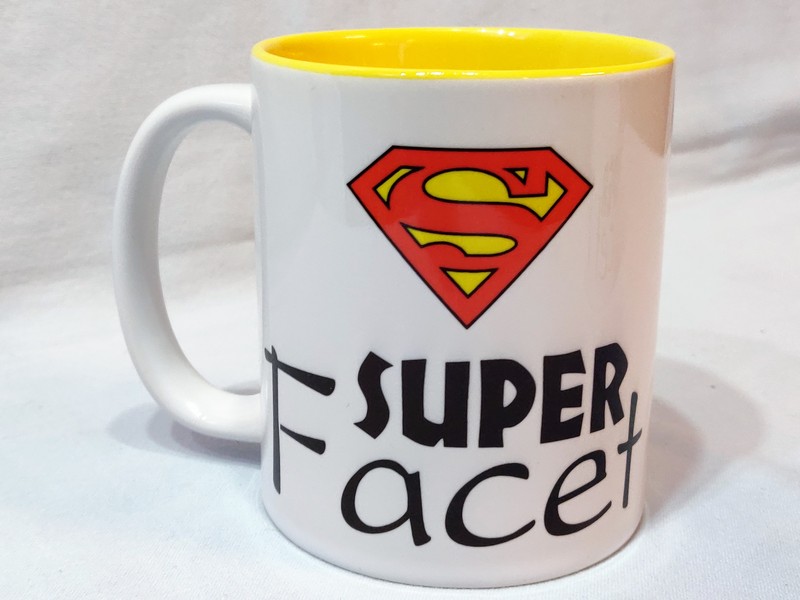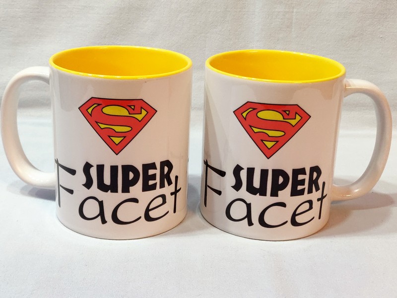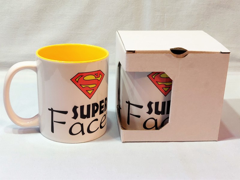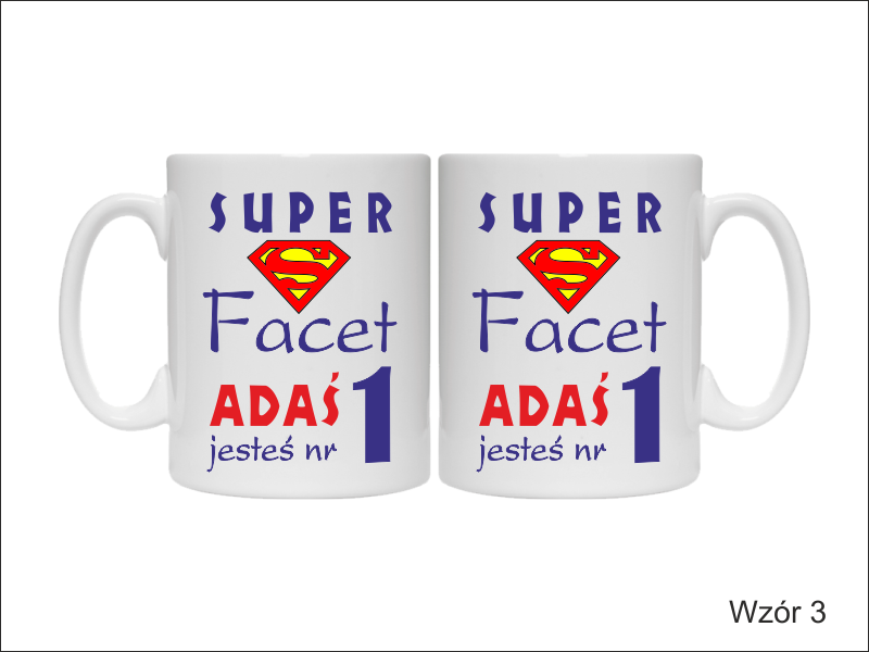 Na kubku wykonny jest pełnokolorowy nadruk pamiątkowej dedykacji "Super Facet".