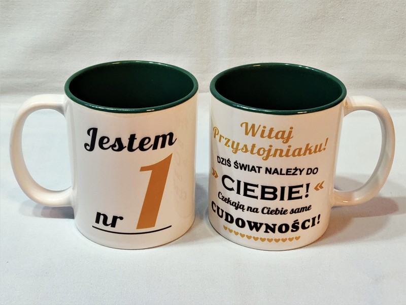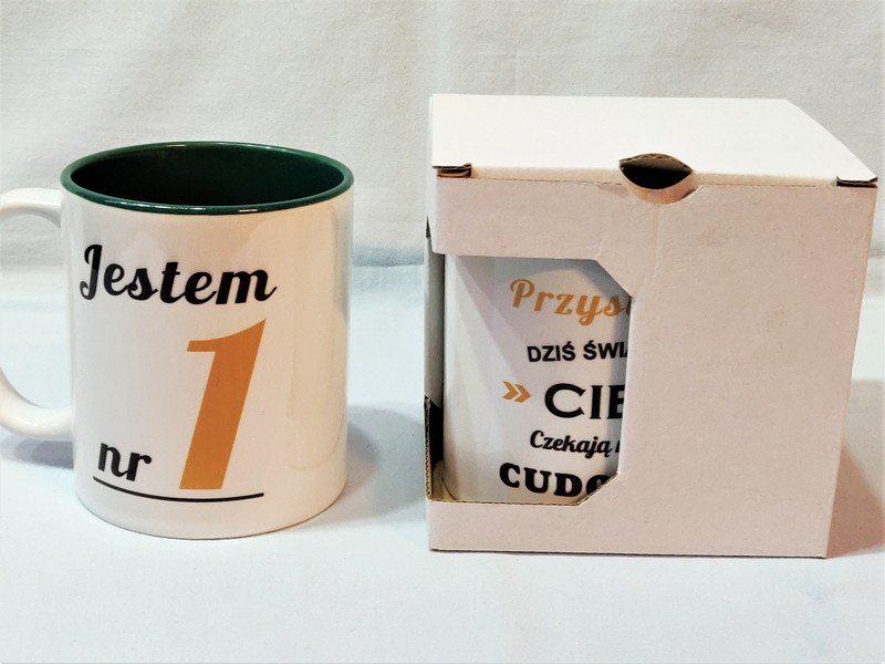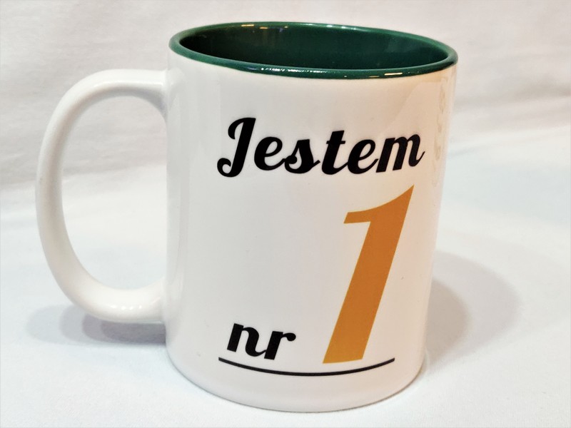 Dla Niego - kubek biały z kolorowym wnętrzem z nadrukiem "Jestem nr 1"