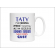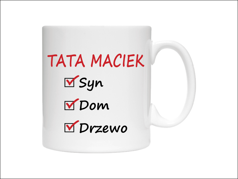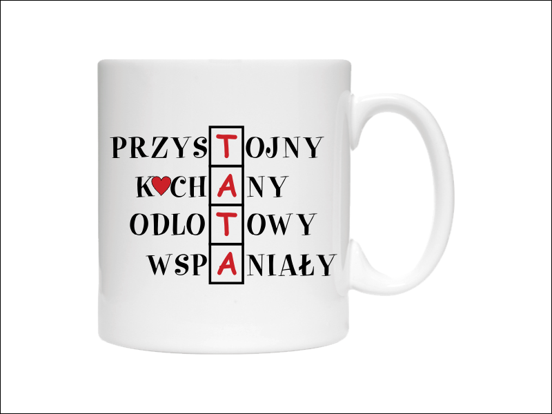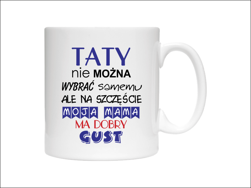 Upominek dla Taty w postaci białego kubka z nadrukiem okolicznościowej dedykacji.