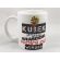 Napis i grafiki nadrukowane na kubku utrzymane są w humorystycznej tonacji.