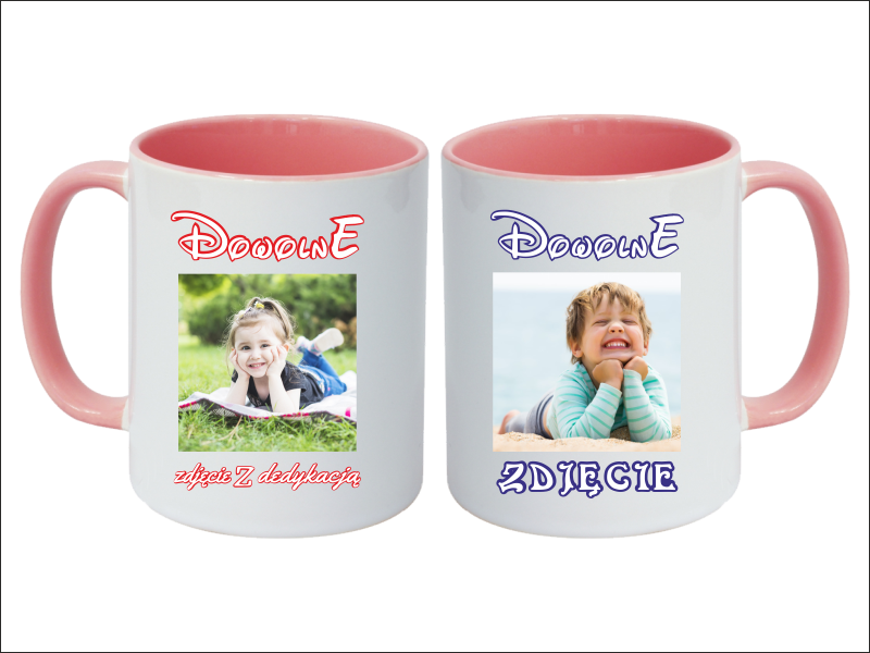 Kubek biały z różowym uszkiem i wnętrzem z nadrukiem o pojemności 330ml i wysokości 9cm, średnica 8cm, wykonany jest z najwyższej jakości ceramiki.