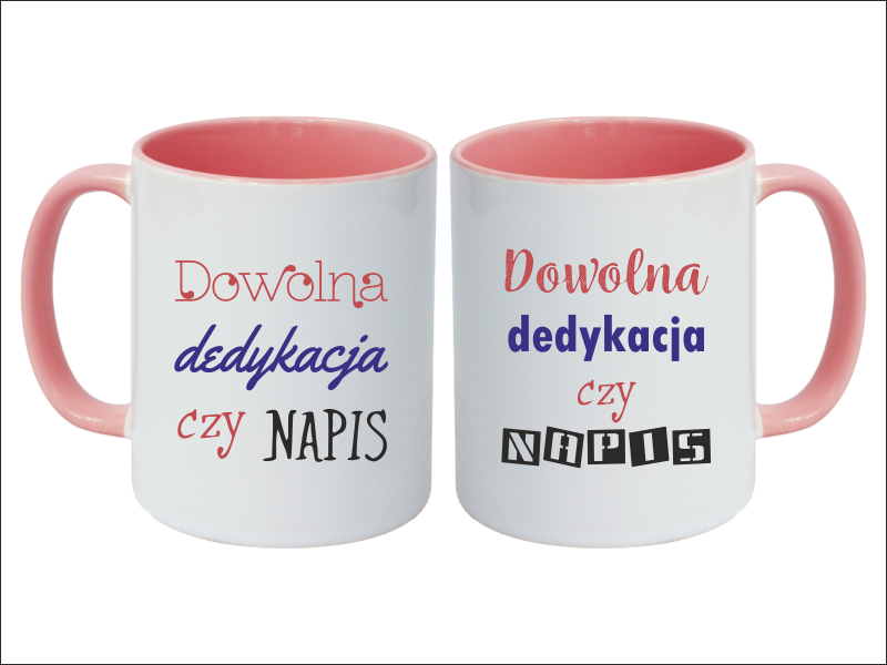 Kubek biały z różowym uszkiem i wnętrzem z nadrukiem
