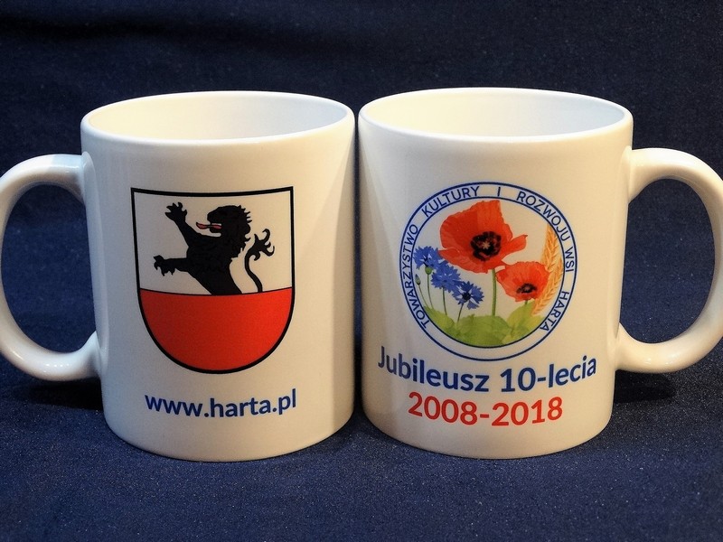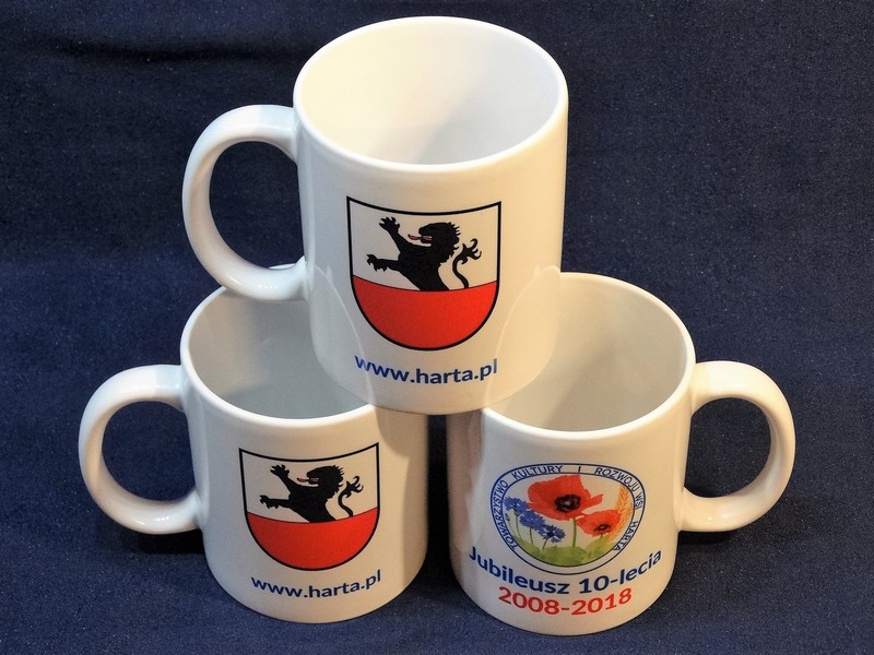 Pamiątka Jubileuszu Stowarzyszenia, Szkoły czy Firmy w postaci kubka z nadrukiem.