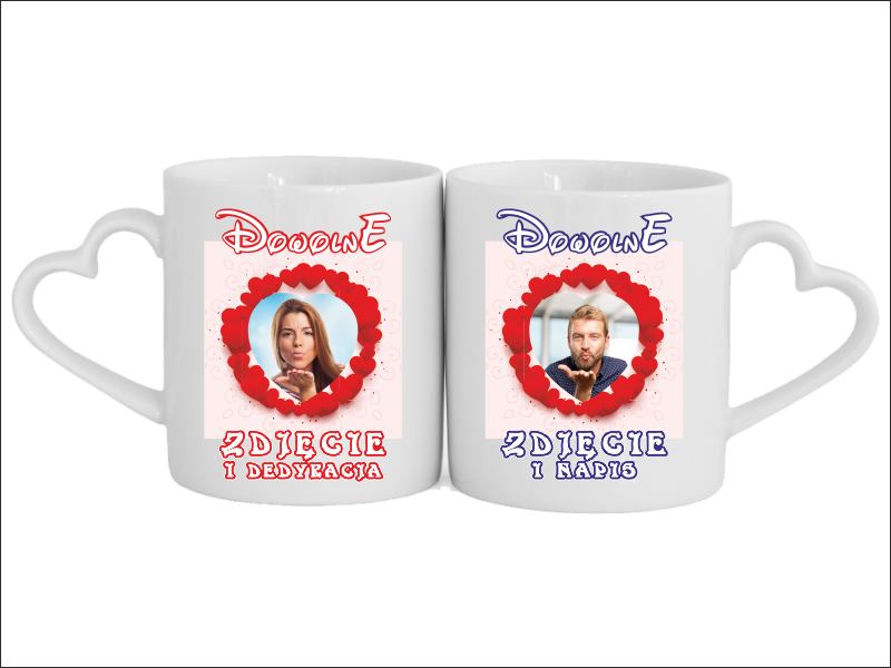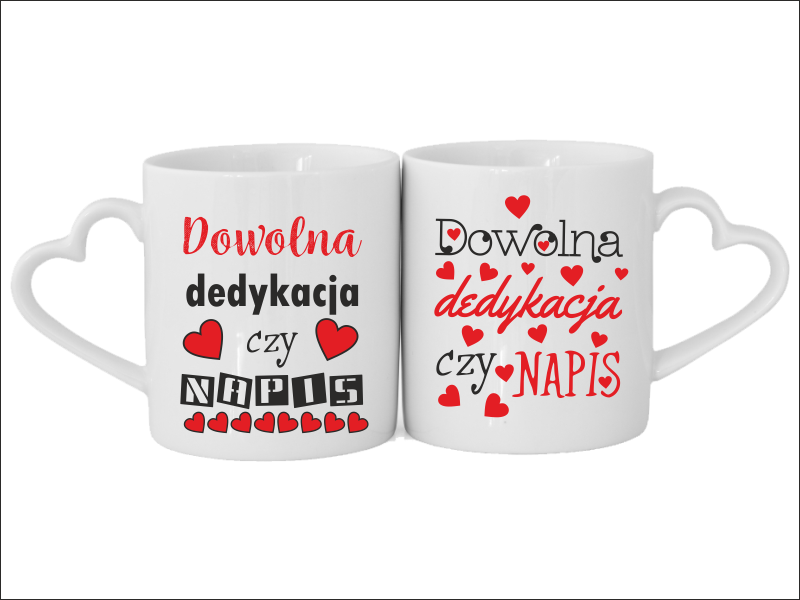 Zestaw kubków AMOR DUO z uchwytem w kształcie serca z nadrukiem o pojemności 300ml i wysokości 9cm, średnica 8cm, wykonany jest z najwyższej jakości ceramiki.