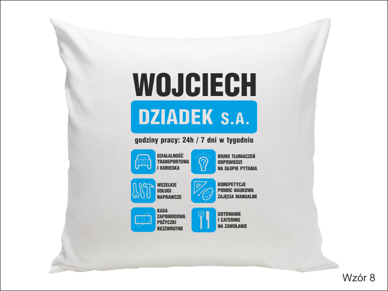 Inne modele poszewek z możliwością okolicznościowego nadruku na Dzień Dziadka znajdziesz w kategorii "Upominki/Poszewki z nadrukiem"