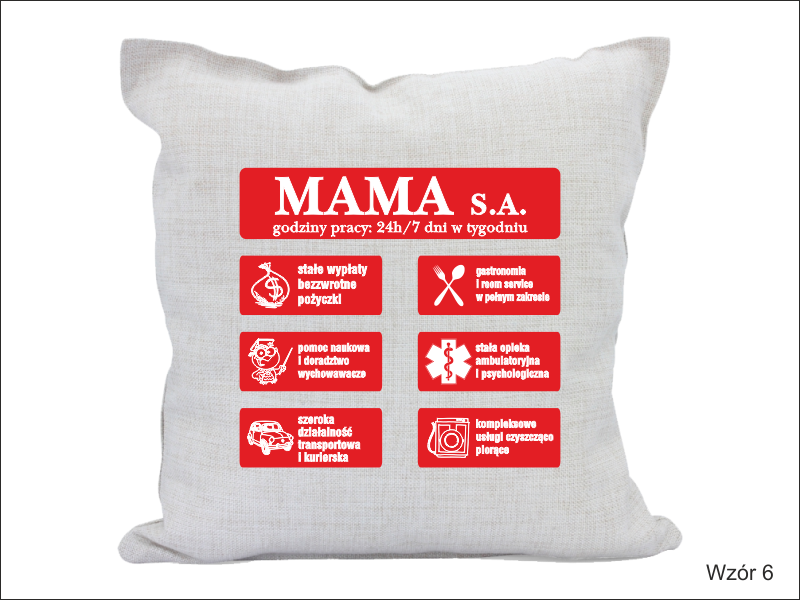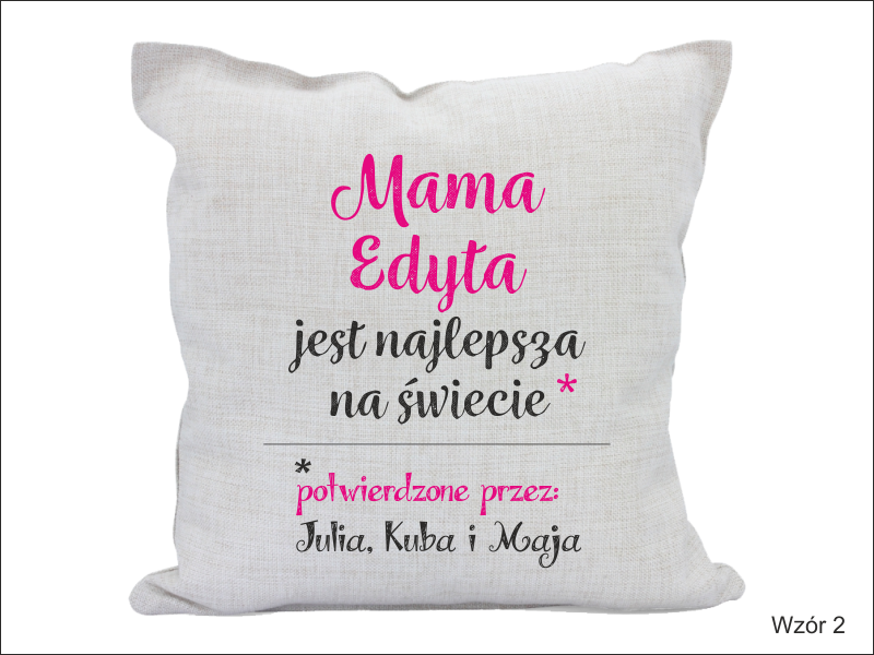 Inne modele poszewek z możliwością okolicznościowego nadruku na Dzień Matki znajdziesz w kategorii "Upominki/Poszewki z nadrukiem"