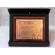 Dedykacja, życzenia, ozdobne grafiki nadrukowane są na blaszce w kształcie ozdobnej patery w złotym odcieniu.