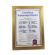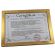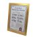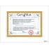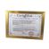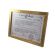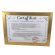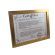 Certyfikat ma postać dyplomu umieszczonego w drewnianej złotej ramie za szkłem.