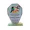 Statuetka szklana z grubego szkła w kształcie szlifowanego wyciągniętego ośmioboku z nadrukiem dedykacji i ozdobnych grafik dla Nauczyciela.