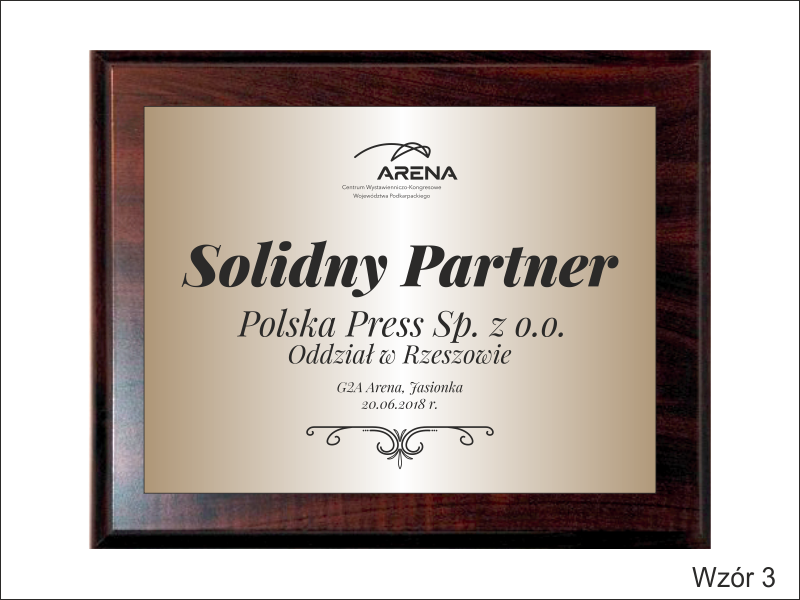 Dedykacja, grafiki, zdjęcia oraz logotypy nadrukowane są.na blaszce lub grawerowane w laminacie.