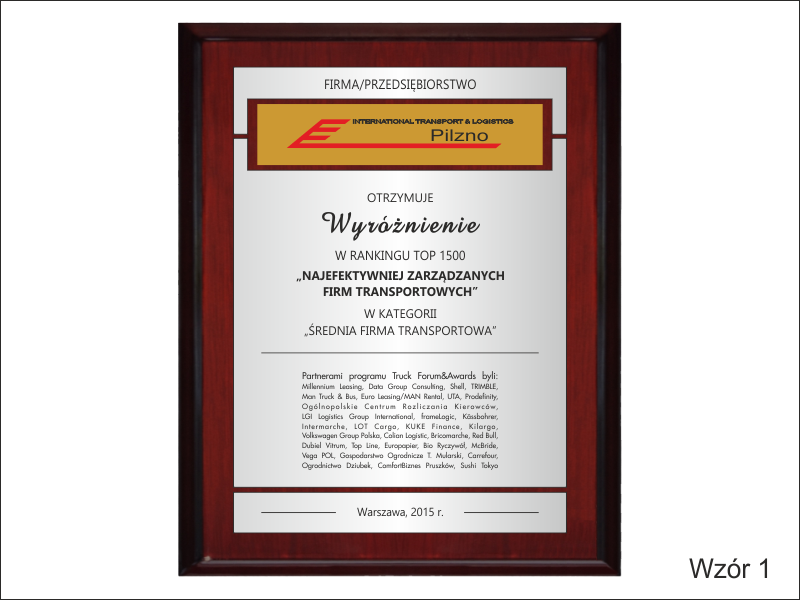 Prezentowany dyplom wykonany jest jest jako wyróżnienie, nagroda dla firmy, ale można wykonać go też na inną okoliczność.