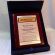 Nagroda lub Wyróżnienie dla firmy w postaci drewnianego, złożony dyplomu okolicznościowego na lakierowany podkładzie.