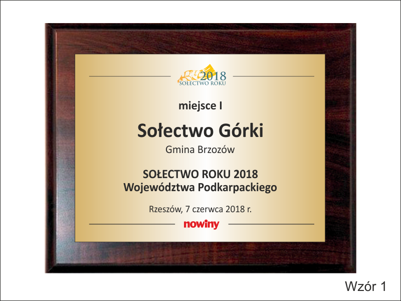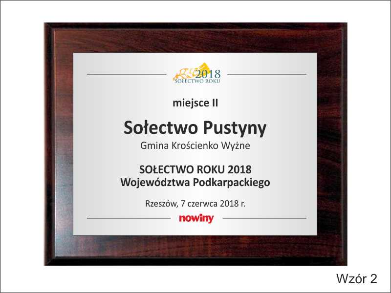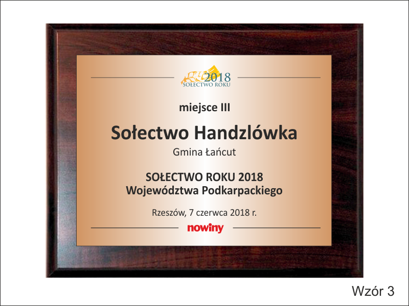 Nagroda, Wyróżnienie w postaci dyplomu okolicznościowego na drewnianym standardowym podkładzie z blaszką z nadrukiem.