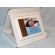 Wyjątkowa pamiątka z okazji Chrztu Świętego w postaci złożonego dyplomu okolicznościowego na białym drewnianym podkładzie.