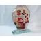 Statuetka ma wysokość 24 cm i grubość tafli szkła 19 mm.
